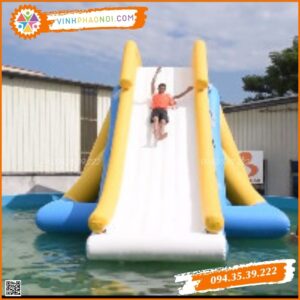 Tháp trượt hay cầu trượt hơi được thiết kế với các tay bám để treo lên trên đỉnh dễ dàng, khi lên đỉnh bạn tiếp tục hành trình trượt với máng trượt dài và kết thúc hành trình trong nước.